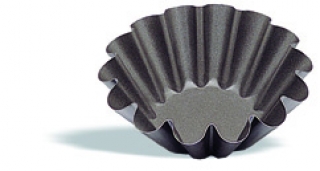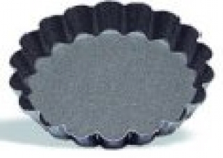 Форма 720.010 для тарталеток. Имеет круглую рифленную форму. Изготовлена из алюминия с антипригарным покрытием. Габаритные размеры: диаметр - 10 см, высота - 1,8 см.