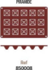Форма для выпечки пирамида 850.008. Материал: силикон. Размеры: одна пирамида 3,6х3,6см, h=2,2см; общий размер формы 30х17,5 см. Количество выемок на форме: 15. Выдерживает температуру от -60С до +230С. Рекомендовано для контакта с пищевыми продуктами. По