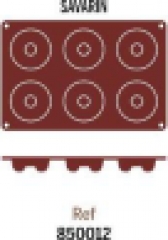Форма для выпечки саварин 850.012. Материал: силикон. Размеры: один саварин d=7,2см, h=2,3см; общий размер формы 30х17,5 см. Количество выемок на форме: 6. Выдерживает температуру от -60С до +230С. Рекомендовано для контакта с пищевыми продуктами. Поверхн