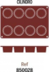Форма для выпечки цилиндр 850.028. Материал: силикон. Размеры: один цилиндр d=6см, h=3,5см; общий размер формы 30х17,5 см. Количество выемок на форме: 8. Выдерживает температуру от -60С до +230С. Рекомендовано для контакта с пищевыми продуктами. Поверхнос