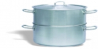 Кастрюля 244.032 (пароварка) серии INOX-PRO из нержавеющей стали 18/10 с сэндвич-дном. Толщина стали 0,8-1,2 мм. Ручки полые внутри. Диаметр 32 см, высота каждой емкости 19 см, объем 15+15 л