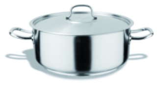 Кастрюля с крышкой 207.040 серии INOX-PRO из нержавеющей стали 18/10 с сэндвич-дном. Толщина стали 0,8-1,2 мм. Ручки из нержавеющей стали полые внутри. Диаметр 40 см, высота 15,5 см, объем 19,5 л