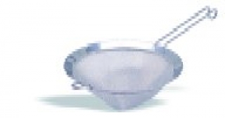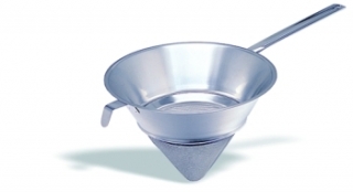 Дуршлаг 347.020 конический из нержавеющей стали 18/10. Рабочая поверхность - сетка с усиленным каркасом, на котором расположена 1 петля. Максимальный диаметр 20 см