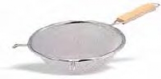 Дуршлаг 374.020 (d20, L38 см) из нержавеющей стали 18/10. Ручка из дерева. Рабочая поверхность сетка с усиленным каркасом, на котором расположены 2 петли