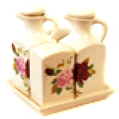Набор для специй 4 предмета (солонка; перечница; баночка для масла - 2 штуки) "Квадрат" на керамической подставке "Розы на белом" 65537