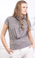 Блуза с коротким рукавом. Воротник - хомут переходит в круглую кокетку спереди. Сборка по шву притачивания кокетки. Размеры: 84-104Рост: 164-170 Состав: вис 50% + пэ 50%