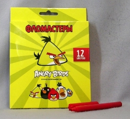 Фломастеры 12 цветов ХАТБЕР Angry birds вентилируемый колпачок картонный блистер