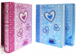Фотоальбом 200 фотографий 12Х16. 21*28. 5. Сердца твердая обложка c блестками футляр Ассорти 6277-2