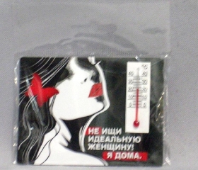 Сувенир-магнит ГКГ виниловый Не ищи идеальную женщину . с термометром