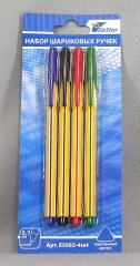 Ручки шариковые набор BEIFA 4 цвета цветной корпус пластиковый блистер AA927W-4