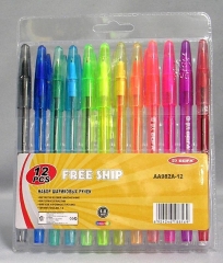 Ручки шариковые набор BEIFA 12 цветов цветной тонированный корпус пластиковый блистер AA982-12
