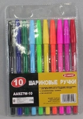 Ручки шариковые набор BEIFA 10 цветов цветной корпус пластиковый блистер AA927W-10