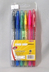 Ручки гелевые набор TZ-119B 6 цветов флюоресцентный цветной корпус пластиковый блистер