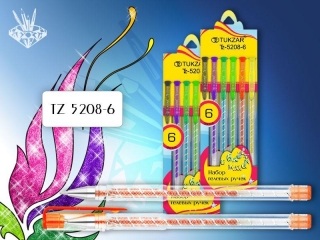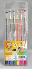 Ручки гелевые набор TZ-5208 6 цветов c блестками картонный блистер