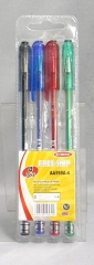 Ручки шариковые набор BEIFA 4 цвета с резиновой вставкой цветной корпус пластиковый блистер AA999-4