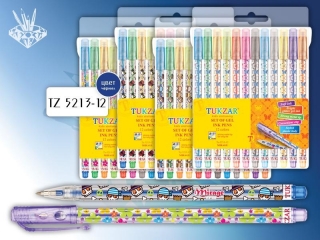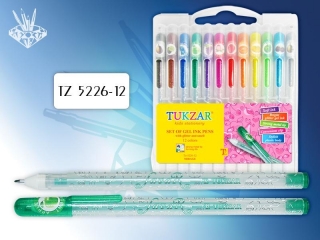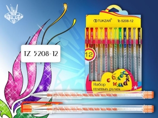 Ручки гелевые набор TZ-5208 12 цветов c блестками картонный блистер
