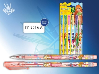 Ручки гелевые набор TZ-5216 6 цветов Magic girl c блестками картонный блистер