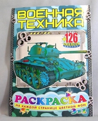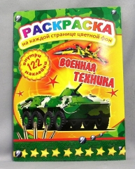 Раскраска А4. лакированная картонная обложка Полиграфсоюз с наклейками Военная техника