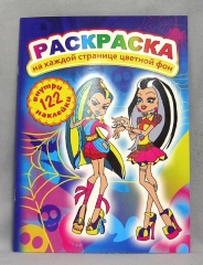Раскраска 165х233. лакированная картонная обложка Полиграфсоюз с наклейками Маленькая модница Ассорти