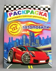 Раскраска А4. картонная обложка ЛиС РН-135. Авто 122 наклейки
