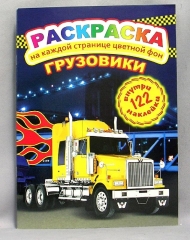 Раскраска А4. картонная обложка ЛиС РН-103. Грузовики 122 наклейки
