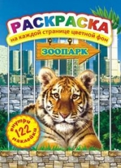 Раскраска А4. картонная обложка ЛиС РН-102. Зоопарк 122 наклейки