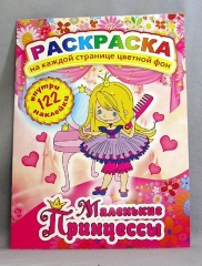 Раскраска 165х233. лакированная картонная обложка Полиграфсоюз с наклейками Принцы и Принцессы Ассорти