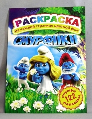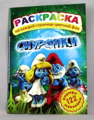 Раскраска А4. картонная обложка ЛиС РН-100. Смурфики 122 наклейки