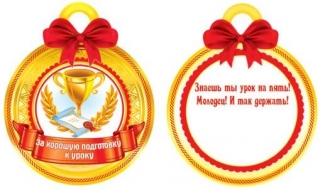 Открытка медаль Мир открыток 7-01-668. За хорошую подготовку к уроку .