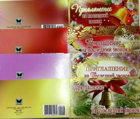 Открытка Приглашение А7. ОЖ 9Ф144/147. На последний звонок в комплекте 80 штук Фол