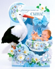 Открытка для новорожденных КОРЗИНА Гранд-Микс РКВ-186. С Рождением сына Блес