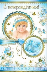 Открытка для новорожденных А5 ПР 53494. С Новорожденным Фол