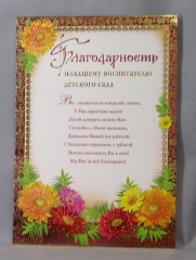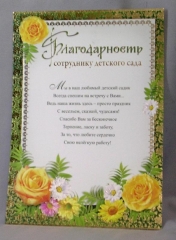 Открытка детсадовская А4. ПР 32743. Благодарность сотруднику детского сада Фол