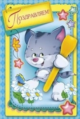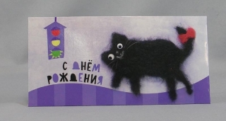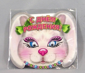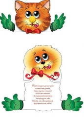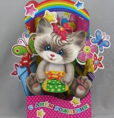 Открытка детская А5. ПР 17713. Кот помпон вырубка сложно- техническая