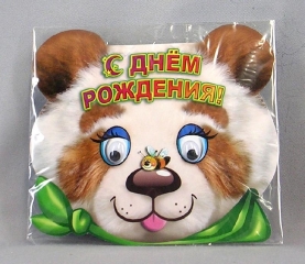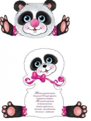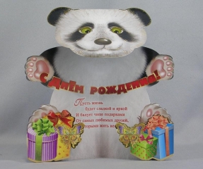 Открытка детская А5. ПР 17711. Мишка-панда помпон вырубка сложно- техническая