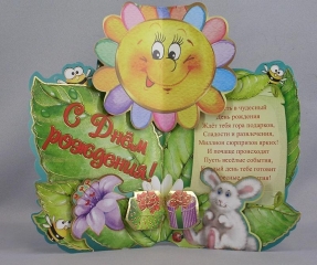 Открытка детская КОРЗИНА Мир открыток 2-15-338А С Днем Рождения Блес