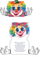 Открытка детская А5. ПР 17712. Клоун помпон вырубка сложно- техническая