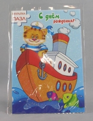 Открытка детская А5. ПР 17744. С Днем Рождения Деталь на скотче Фол