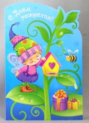 Открытка детская А5. ПР 17730. С Днем Рождения вырубка сложно- техническая Фол