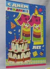 Открытка А4. 11 лет ПР 17853. С Днем Рождения 11 лет Фол