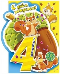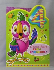 Открытка А4. 4 года МП 058. 772. С Днем Рождения 4 года Блес