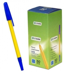 Ручка шариковая СТАММ РШ 049 синяя желтый корпус стекло керамика 135мм
