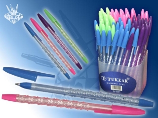 Ручка шариковая TZ-021. гофрированный цветной корпус Ассорти синяя
