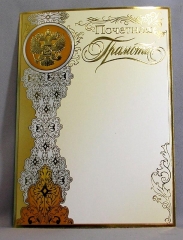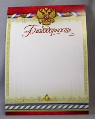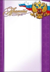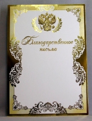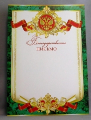 Грамота А4. Мир открыток 9-01-229А Благодарственное письмо Россия . Фол