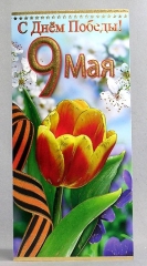 Открытка 9 Мая Евро (размер 110*220 мм) Мир открыток 2-01-3419А 9 Мая Россия без текста Фол