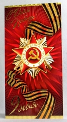 Открытка 9 Мая Евро (размер 110*220 мм) ПР 64312. 9 Мая б/т Фол