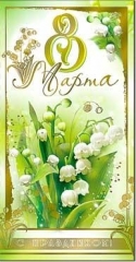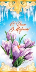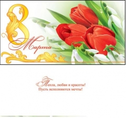 Открытка 8 Марта Евро (размер 110*220 мм) МП 082. 285. С праздником Весны 8 Марта Блес