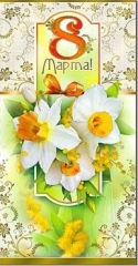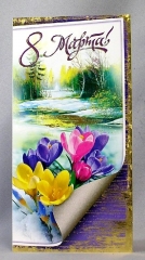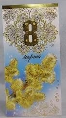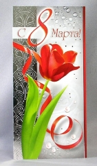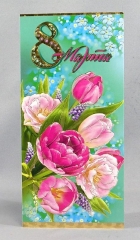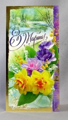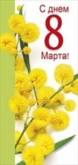 Открытка 8 Марта Евро (размер 110*220 мм) ИП 80. 807. 00. С парздником 8 Марта Фол
