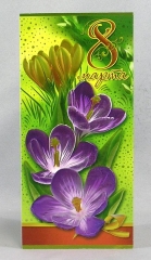 Открытка 8 Марта Евро (размер 110*220 мм) ФДА 27-29-М 8 Марта б/т Фол