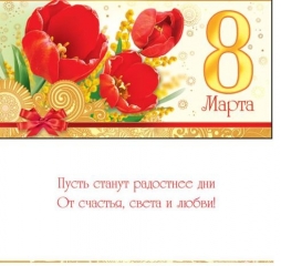 Открытка 8 Марта А5. ОтП 81. 260. 8 Марта с пожеланиями с дополнительным элементом Блес